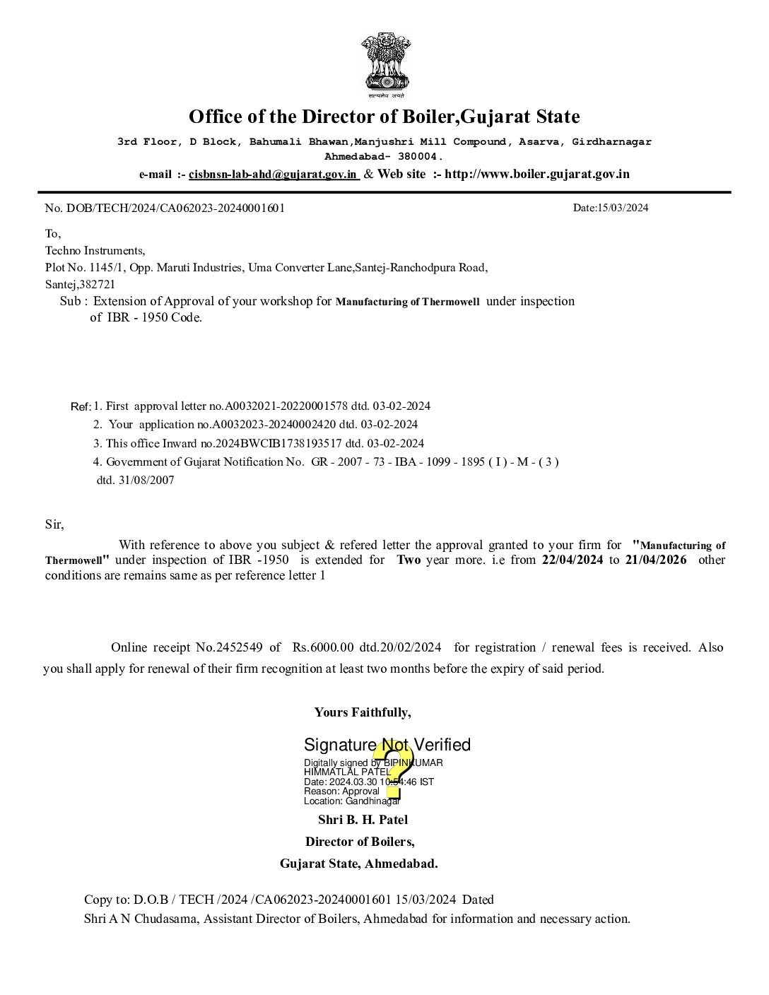 IBR RENEWAL CERTIFICATE 2024