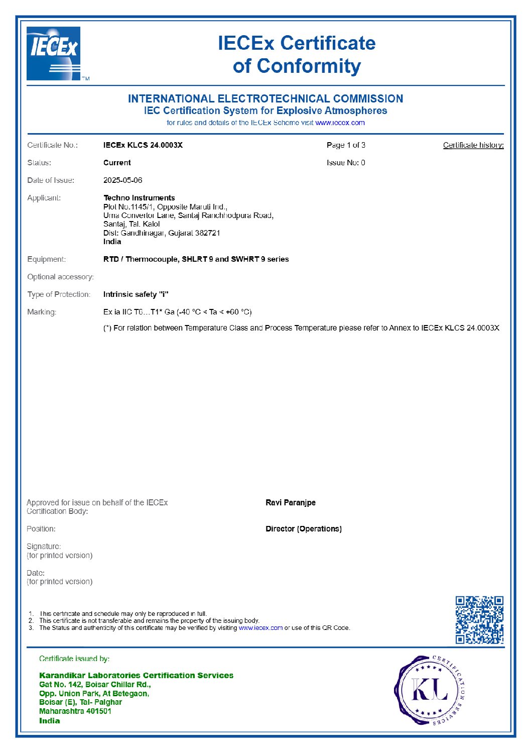 IECEx KLCS 24.0003X